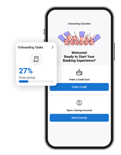 Drive account activation within the first 90 days through a guided onboarding checklist, that encourages key setup actions like direct deposits, auto-bill payments, and card activation.